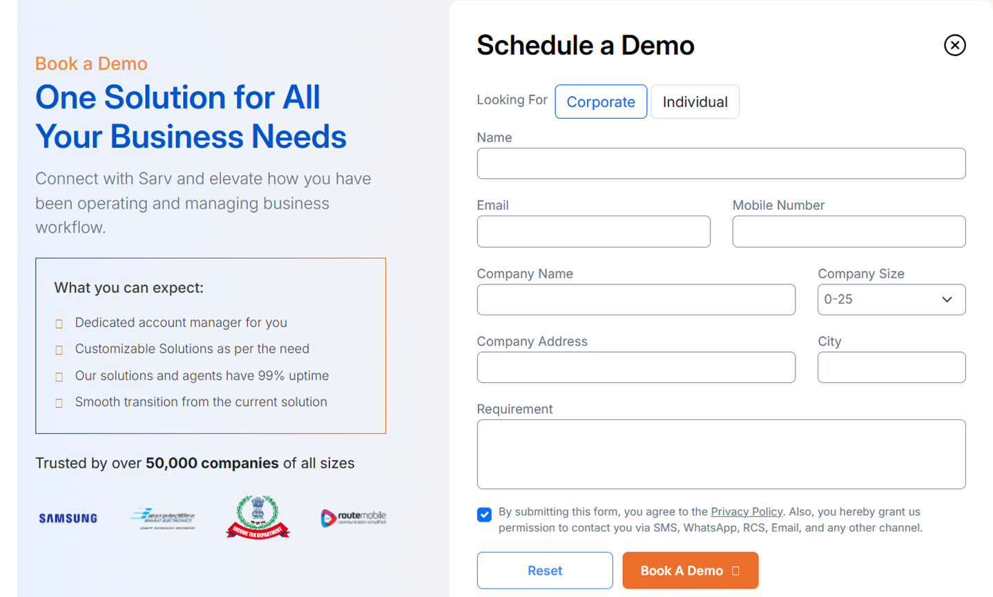 Compliance with TRAI/DOT regulations, India data residency, end-to-end encryption, and enterprise certifications such as ISO 27001 and SOC 2. - Seamless Integrations