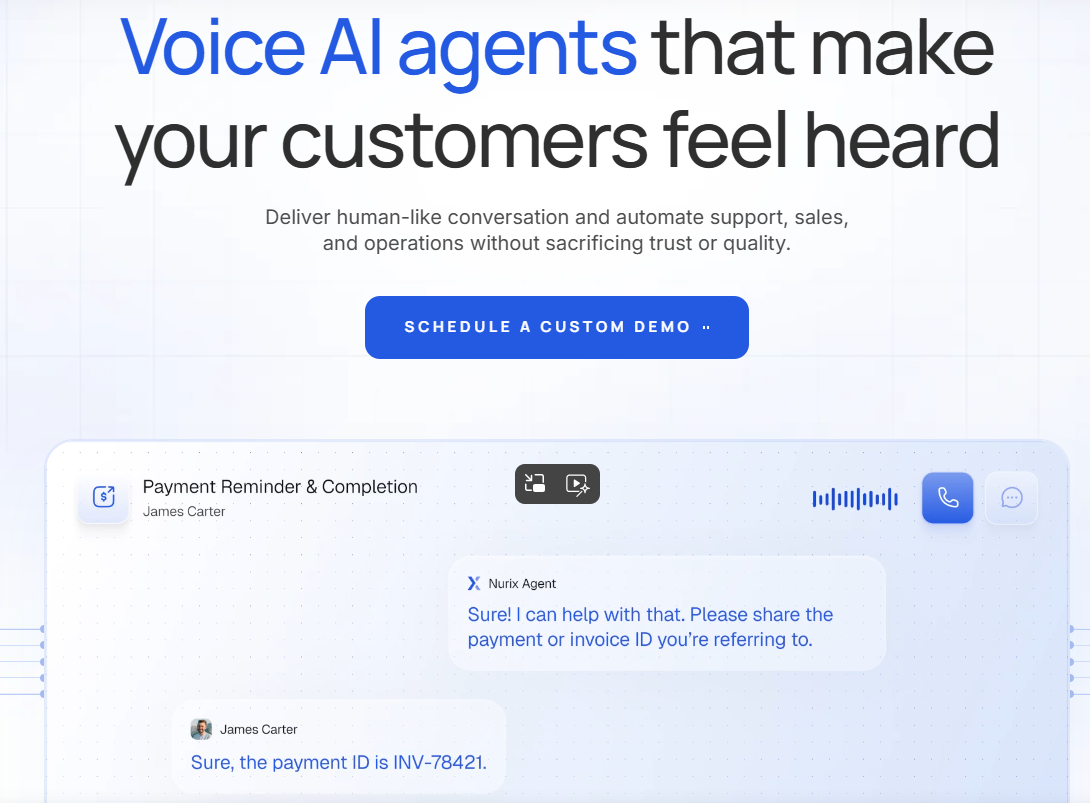 Nurix AI is an emerging India-native platform building autonomous AI voice agents specifically for sales, customer success, and collections workflows. Unlike traditional voicebot platforms focused on inbound support, Nurix focuses on agentic AI — voice agents capable of completing multi-step outbound tasks like qualifying a lead, scheduling a demo call, or following up on a missed payment — making it highly relevant for Indian inside sales teams, NBFCs, and collections departments that need intelligent outbound voice automation at scale.