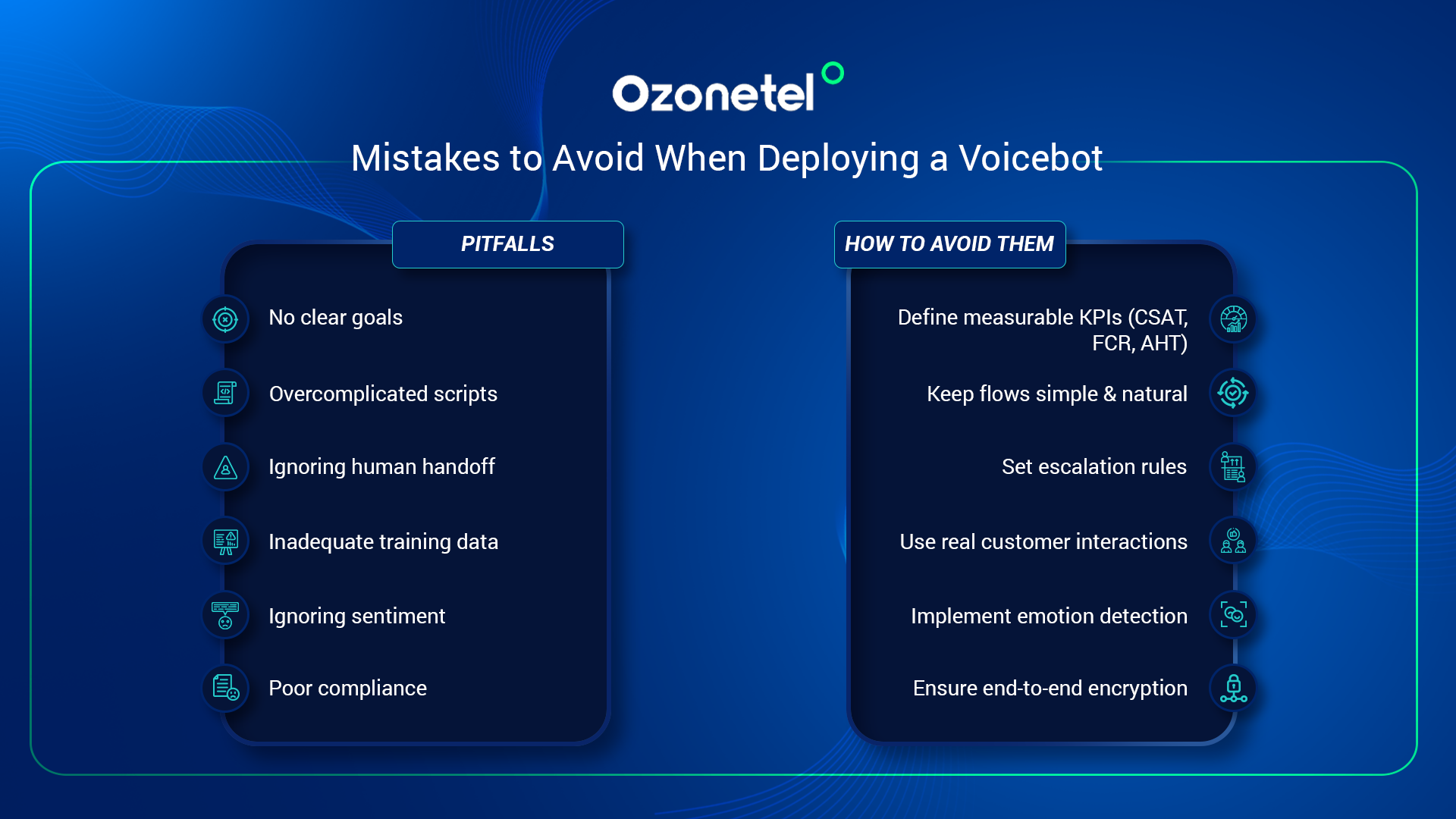 Deploying a voicebot without defined goals can lead to poor performance and missed opportunities.